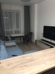 Есть вся необходимая для комфортного проживания мебель и техника, включая посудомойку и кондиционер. Санузел совмещенный. Без балкона.