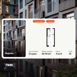 Новостройка! Продается 1-комн. кв-ра площадью 18,7 кв.м, (Корпус 1.3, Секция 3) 21 этаж 38-этажного дома в Нарвин от ПИК. Новый проект ПИК Серии плюс "Нарвин" возводится в Головинском районе Москвы.