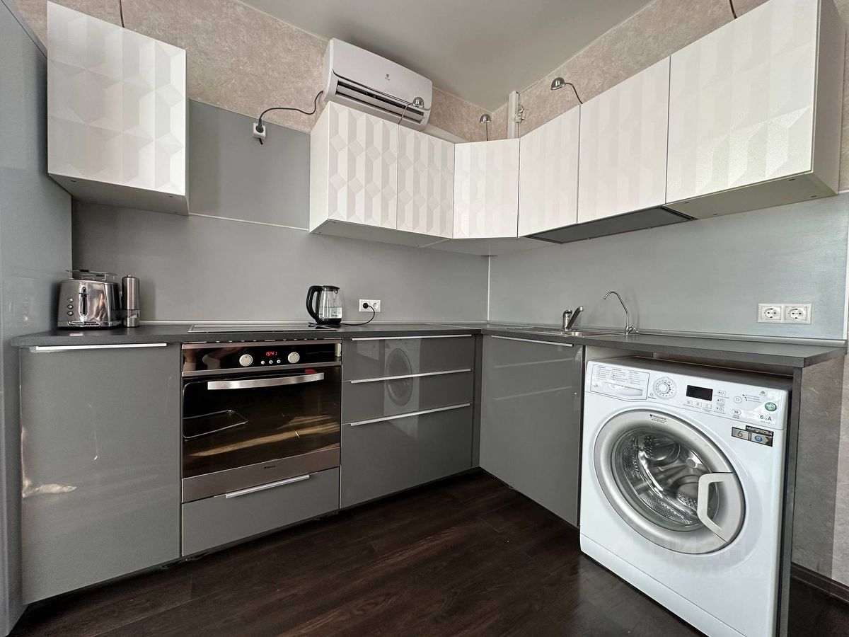 Квартира с встроенной кухней, бытовой техникой и мебелью.