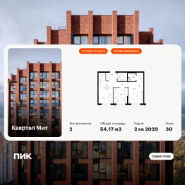 Новостройка! Продается 2-комн. кв-ра площадью 54,17 кв.м, (Корпус 3.4, Секция 4) 30 этаж 32-этажного дома в Квартал Мит от ПИК. "Квартал Мит" строится в экологически чистом районе Митино, где по соседству расположен большой лесопарк, а с двух сторон протекают реки Сходня и Журавка. Для семей с детьми здесь появится школа и два детских сада.