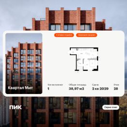 Новостройка! Продается 1-комн. кв-ра площадью 38,97 кв.м, (Корпус 3.4, Секция 4) 28 этаж 32-этажного дома в Квартал Мит от ПИК. "Квартал Мит" строится в экологически чистом районе Митино, где по соседству расположен большой лесопарк, а с двух сторон протекают реки Сходня и Журавка. Для семей с детьми здесь появится школа и два детских сада.