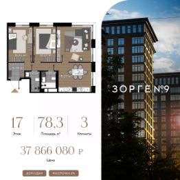 "Зорге 9" — готовый квартал апартаментов с премиальными сервисами на Ходынке. В трех корпусах с панорамными окнами предусмотрены уникальные форматы площадей, удовлетворяющие самый взыскательный вкус. В 7 минутах ходьбы от "Зорге 9" расположены 4 станции метро: Полежаевская", "Хорошевская", "Зорге" и "Хорошево". До делового центра "Москва-Сити" 10 минут на автомобиле. Простота форм, строгие линии, панорамные окна, архитектурное освещение и арт-объекты поддержат атмосферу роскоши и комфортной жизни на Ходынке. Именно за яркую архитектуру апарт-комплекс "Зорге 9" получил престижную международную премию European Property Awards. Комплекс полностью введен в эксплуатацию. "Зорге 9" — территория инноваций. Высокие потолки и панорамные окна Guardian ClimaGuard Solar с энергоэффективным "умным" напылением. Предусмотрен ряд премиальных сервисов: вход по Face ID, мобильное приложение резидента, дающее доступ ко всем услугам в один клик, 500 видеокамер на территории, двухуровневый подземный паркинг с автоматическим шлагбаумом, зарядкой для электромобилей, велосейфом и станцией подкачки шин. В "Зорге 9" можно рассмотреть варианты площадей от 27 до 81 кв. м, свободной планировки, с окнами в пол и высотой потолков 3,15 м, а также уникальные форматы пространств. Апартаменты с террасами позволят создать дополнительное рабочее пространство или зону отдыха на свежем воздухе, а тканевые маркизы помогут создать тень и повысить уровень приватности. Угловое остекление станет особой изюминкой и украсит любой интерьер. На последних этажах предусмотрены пентхаусы с каминами и выходами на кровлю: от 150 кв. м жилья high-уровня с максимальным уровнем инсоляции — на потолках в пентхаусах появятся так называемые "световые фонари". "Зорге 9" СДАН, все корпуса введены в эксплуатацию.