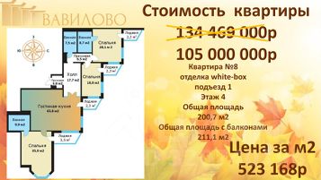 • Стоимость квартиры N8 до 30 ноября 2025г. по АКЦИИ - 105 000 000 руб.