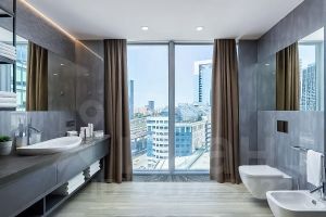 Панорамное остекление открывает захватывающие виды на столицу, наполняя пространство естественным светом и энергией.