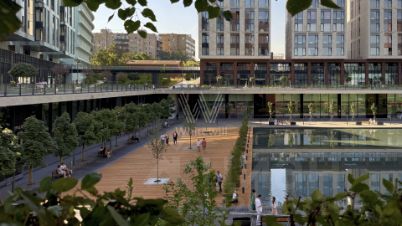 Главное о доме. "Садовые кварталы" — городской ансамбль с собственным парком, бульварами и дворами без машин в Хамовниках. Архитектура держится на светлом камне, крупном остеклении и спокойных вертикалях; разные по высоте корпуса формируют чёткий городской рельеф. Входные группы напоминают лобби хорошей гостиницы: натуральные материалы, высокий потолок, стойки ресепшн и мягкие зоны. На территории работают клубные пространства и семейная инфраструктура, внутри квартала открыт World Class. Вечером дворики читаются камерно благодаря мягкой подсветке. Паркинг под корпусами связан с лобби лифтами.