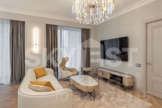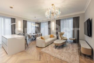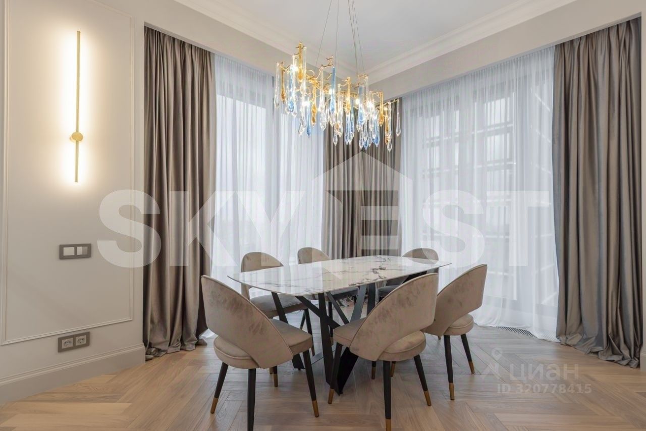 ЛОТ 8534 Продажа видовой 5-комнатной квартиры общей площадью 161 кв.м. Метро Динамо, 8 минут пешком. Ленинградский проспект, 37/3. ЖК Прайм Парк (Prime Park). Квартира полностью меблирована и укомплектована премиальной техникой. Благодаря панорамному остеклению и потолкам высотой 3,2 метра пространство наполнено воздухом и естественным светом. Из окон открываются панорамные виды на город.