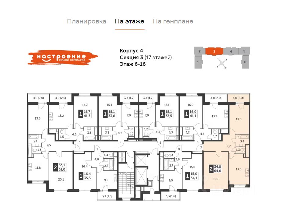 В продаже видовая 2-комнатная квартира 64 кв.м. на 15 этаже с отделкой в ЖК Настроение.