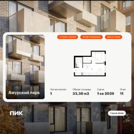Продаётся 1-комн. квартира площадью 33,3 кв.м на 11 этаже 27 этажного дома (Корпус 4.3, Секция 3) проекта ПИК Амурский парк. Светлый просторный подъезд на уровне земли, функциональная планировка, большие окна, c отделкой.
