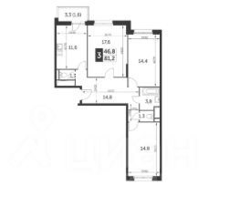 Продаётся 3-комнатная квартира с отделкой. Отделка под ключ (включая сантехнику, освещение, межкомнатные двери). В комнатах- ламинат, на кухне -плитка, натяжные потолки, 2-камерные стеклопакеты). Квартира на 9 этаже сданного жилого комплекса. Комнаты 17,6 кв.м. + 14,4 кв.м. + 14,8 кв.м. Вид во двор и на ВДНХ