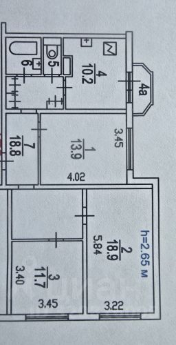 Дом серии КОПЭ, общ. площадь: 77,5 кв.м., комнаты: 13,9-18,9-11,7 кв.м., просторная кухня: 10,2 кв.м. с выходом на застекленный балкон, коридор и холл: 18,8 кв.м. Санузел раздельный в хорошем состоянии. Окна в квартире выходят на две стороны дома.