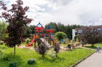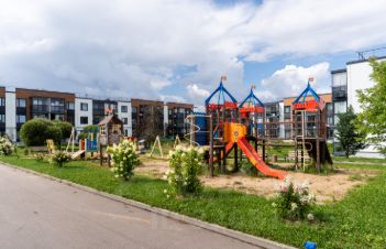 Огороженная территория с местами для автовладельцев. В дворе детские площадки и зона для барбекю. ЖК находится в удалении от шоссе и шумных дорог, в тихом месте, а в его окрестностях располагается множество водоемов.