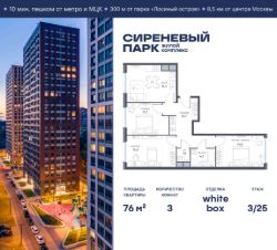 Продаётся просторная 3-комнатная квартира общей площадью 76 м² на 3 этаже в новом жилом комплексе "Сиреневый парк", расположенном в Восточном административном округе Москвы на улице Тагильская. Всего 10 минут ходьбы от станции метро "Бульвар Рокоссовского" и одноимённой платформы МЦК.