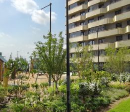 Закрытый двор (стилобат) с уютными местами отдыха и безопасными детскими площадками.