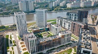 На территории комплекса выполняется устройство детских и спортивных площадок, озеленение. Предусмотрены гостевые автостоянки и подземный паркинг вместимостью свыше 1500 мест. В непосредственной близости расположены детский сад, торгово-развлекательные и бизнес центры, продовольственные магазины, кафе и набережная р. Москва