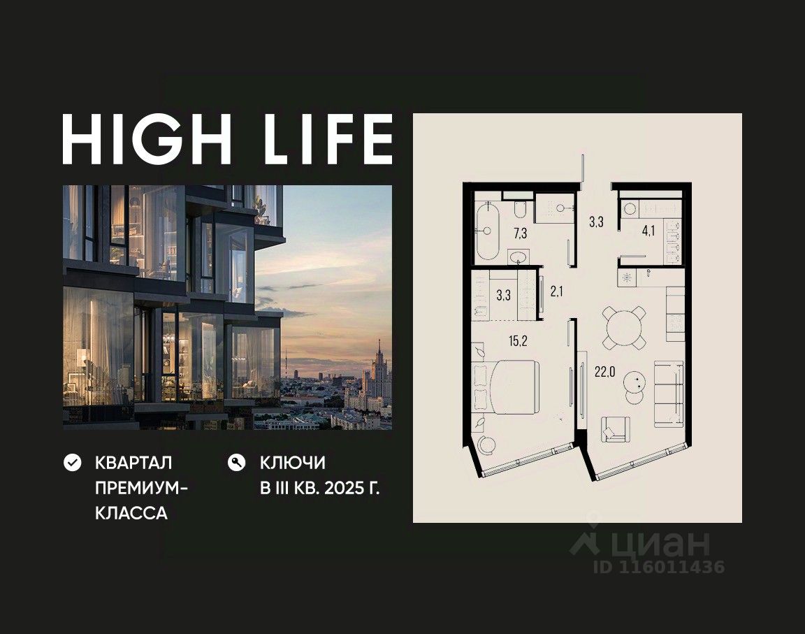 HIGH LIFE - премиальный проект компании PIONEER, расположенный в 5 минутах от Садового кольца, вблизи исторического Замоскворечья. Авторская архитектура от бюро ADM. Панорамные окна и изящные эркеры открывают виды на Кремль, МГУ, Москва-Сити, Дом Музыки и набережные реки. 70% видовых квартир. Инфраструктура и сервис отеля 5*: • Дизайнерские лобби от Jaime Beriestain Studio • Частный кинозал • Библиотека с камином • Двухуровневый двор-парк 2 га с хвойным лесом и террасами • Залы для йоги и занятий спортом • Массажный кабинет, SPA и бьюти-зоны • Консьерж-сервис Технологии и инженерия: • Центральная система кондиционирования • Дополнительная вентиляция помещений • Буферная мусорокамера • Обеззараживание воздуха • Мониторинг качества воды с дополнительной доочисткой • Дополнительная шумоизоляция • Автоматизированная система передачи данных в УК Системы безопасности: • Датчики движения • Круглосуточное наблюдение • Система доступа с распознаванием лиц • Приложение для наблюдения за квартирой • Система пожарного обнаружения • Датчики дыма и протечек За 22 года на рынке недвижимости компания PIONEER реализовала более 30 проектов. Сегодня PIONEER - девелопер премиальной недвижимости с 4 проектами класса премиум и deluxe. Звоните, и мы с удовольствием расскажем все подробности о нашем замечательном проекте и условиях покупки. Продажа от застройщика.