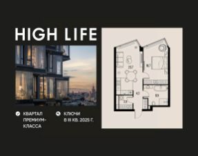 HIGH LIFE - премиальный проект компании PIONEER, расположенный в 5 минутах от Садового кольца, вблизи исторического Замоскворечья. Авторская архитектура от бюро ADM. Панорамные окна и изящные эркеры открывают виды на Кремль, МГУ, Москва-Сити, Дом Музыки и набережные реки. 70% видовых квартир. Инфраструктура и сервис отеля 5*: • Дизайнерские лобби от Jaime Beriestain Studio • Частный кинозал • Библиотека с камином • Двухуровневый двор-парк 2 га с хвойным лесом и террасами • Залы для йоги и занятий спортом • Массажный кабинет, SPA и бьюти-зоны • Консьерж-сервис Технологии и инженерия: • Центральная система кондиционирования • Дополнительная вентиляция помещений • Буферная мусорокамера • Обеззараживание воздуха • Мониторинг качества воды с дополнительной доочисткой • Дополнительная шумоизоляция • Автоматизированная система передачи данных в УК Системы безопасности: • Датчики движения • Круглосуточное наблюдение • Система доступа с распознаванием лиц • Приложение для наблюдения за квартирой • Система пожарного обнаружения • Датчики дыма и протечек За 22 года на рынке недвижимости компания PIONEER реализовала более 30 проектов. Сегодня PIONEER - девелопер премиальной недвижимости с 4 проектами класса премиум и deluxe. Звоните, и мы с удовольствием расскажем все подробности о нашем замечательном проекте и условиях покупки. Продажа от застройщика.