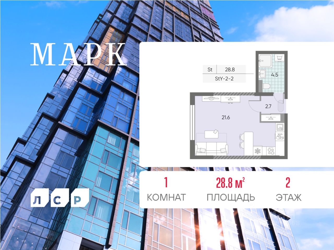 В доме премиум-класса МАРК продаётся квартира-студия общей площадью 28.8 кв. метров на 2 этаже. Дом располагается в престижном Даниловском районе Москвы. В ближайшем будущем на станции МЦК "ЗИЛ" появится пересадочный узел, открывающий доступ к двум новым линиям метро — "Бирюлевской" и "Троицкой". А также завершится строительство пешеходного моста, который проложит пешеходный маршрут к станции метро "Нагатинская".