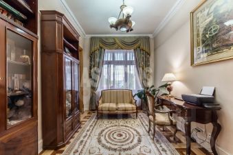 Функциональная планировка квартиры: просторная гостиная с действующим камином, кухня, 2 изолированные спальни, кабинет, 2 совмещенных с/у (один с джакузи, второй с душевой кабиной), холл. Квартира полностью меблирована и укомплектована всей необходимой техникой известных мировых брендов для комфортного проживания. Окна выходят на 2 стороны: открывается красивый вид на башни Кремля и во двор. Качественный ремонт в классическом стиле.