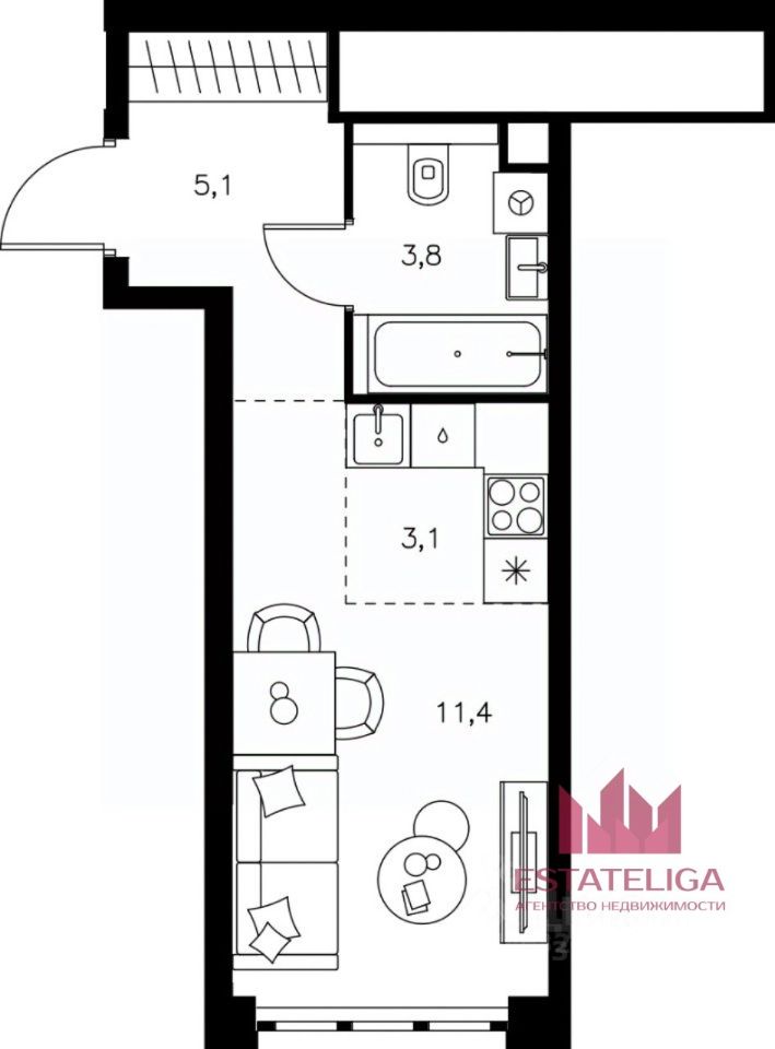 Представленая квартиры имеет выгодную геометрическую форму общей площадью 23,3 кв. м., что подарит жильцам камерную атмосферу и уют. Срок сдачи по ДДУ I кв. 2026 г.