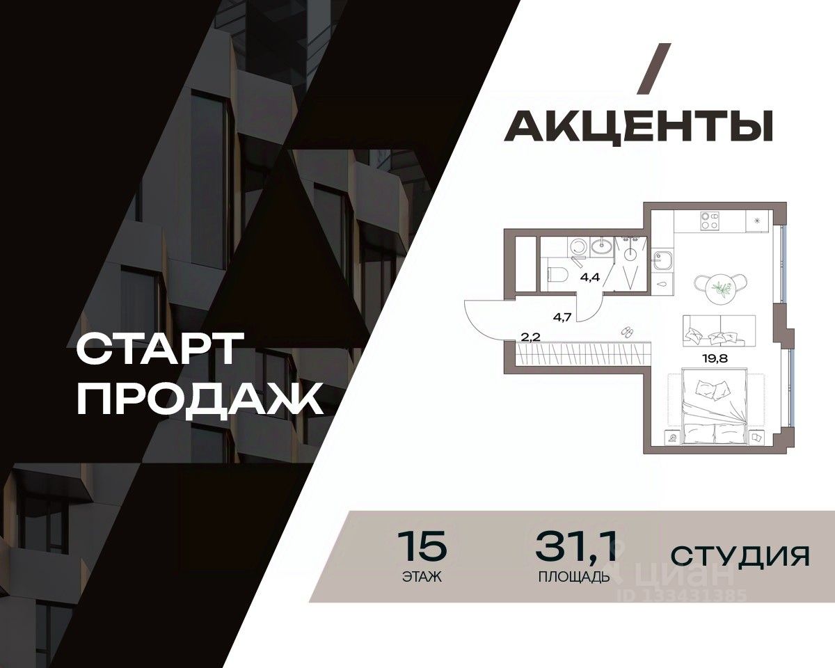 Смарт-студия для молодых специалистов или тех, кто ценит личное пространство и независимость. -Свободная линейная планировка, где гармонично зонирована кухня и спальня -Возможность установки дополнительной перегородки для разделения пространства на гостиную и спальную зону -В квартире предусмотрено классическое остекление -Дополнительные окна в квартире наполнят пространство светом -Вместительная зона для хранения вещей в коридоре. Смарт-студия подойдет тем, кто ищет функциональное и доступное жилье. Молодой район для жизни "Акценты" в классе бизнес-лайт — точка роста на севере Москвы. Он предлагает элегантные и строгие фасадные решения, авторский ландшафтный дизайн, а также функциональные и доступные по цене планировки. Проект находится в семи минутах пешком от станции метро "Лианозово" и одноименной МЦД-1. Добраться до МКАД можно будет за 10 минут на авто, а дорога до центра займет около 20 минут. Жилой комплекс, расположенный в районе Восточного Дегунино, предлагает развитую инфраструктуру для тех, кто ценит выбор. Он имеет удобный доступ не только к транспорту, но и к паркам, школам, садам, больницам и другим социальным объектам. В пешей доступности находятся 4 поликлиники, 5 школ, 6 детских садов, 3 бассейна и баскетбольная академия. Еще рядом есть несколько лесопарков: "Лианозово" с аттракционами и спортивными площадками для тенниса, волейбола и баскетбола, "Останкино" с конным клубом, прудом и пейнтбол-площадками. А "Северные Дубки" — это завораживающее пространство для прогулок под кронами вековых дубов, берез и лип. Кроме того, в районе не будет скучно и юным жителям. Можно оттачивать трюки в скейтпарке "Союз". Ловким и прыгучим советуем записаться в акробатический центр "Белка".