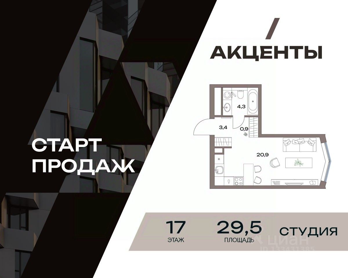 Смарт-студия для молодых специалистов или тех, кто ценит личное пространство и независимость. -В квартире предусмотрено классическое остекление с эркерами -Ниша для хранения вещей в коридоре -Просторная кухня-гостиная с грамотно зонированной кухней и зоной для отдыха Смарт-студия подойдет тем, кто ищет функциональное и доступное жилье. Молодой район для жизни "Акценты" в классе бизнес-лайт — точка роста на севере Москвы. Он предлагает элегантные и строгие фасадные решения, авторский ландшафтный дизайн, а также функциональные и доступные по цене планировки. Проект находится в семи минутах пешком от станции метро "Лианозово" и одноименной МЦД-1. Добраться до МКАД можно будет за 10 минут на авто, а дорога до центра займет около 20 минут. Жилой комплекс, расположенный в районе Восточного Дегунино, предлагает развитую инфраструктуру для тех, кто ценит выбор. Он имеет удобный доступ не только к транспорту, но и к паркам, школам, садам, больницам и другим социальным объектам. В пешей доступности находятся 4 поликлиники, 5 школ, 6 детских садов, 3 бассейна и баскетбольная академия. Еще рядом есть несколько лесопарков: "Лианозово" с аттракционами и спортивными площадками для тенниса, волейбола и баскетбола, "Останкино" с конным клубом, прудом и пейнтбол-площадками. А "Северные Дубки" — это завораживающее пространство для прогулок под кронами вековых дубов, берез и лип. Кроме того, в районе не будет скучно и юным жителям. Можно оттачивать трюки в скейтпарке "Союз". Ловким и прыгучим советуем записаться в акробатический центр "Белка".