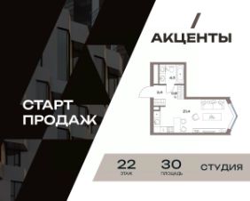 Смарт-студия для молодых специалистов или тех, кто ценит личное пространство и независимость. -В квартире предусмотрено классическое остекление с эркерами -Ниша для хранения вещей в коридоре -Просторная кухня-гостиная с грамотно зонированной кухней и зоной для отдыха Смарт-студия подойдет тем, кто ищет функциональное и доступное жилье.