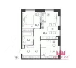 Id 55674. К Вашему вниманию двухкомнатная квартира в ЖК бизнес-класса "Шагал" площадью - 59.7м2 . Срок передачи ключей по ДДУ - не позднее "30" июня 2027 года.
