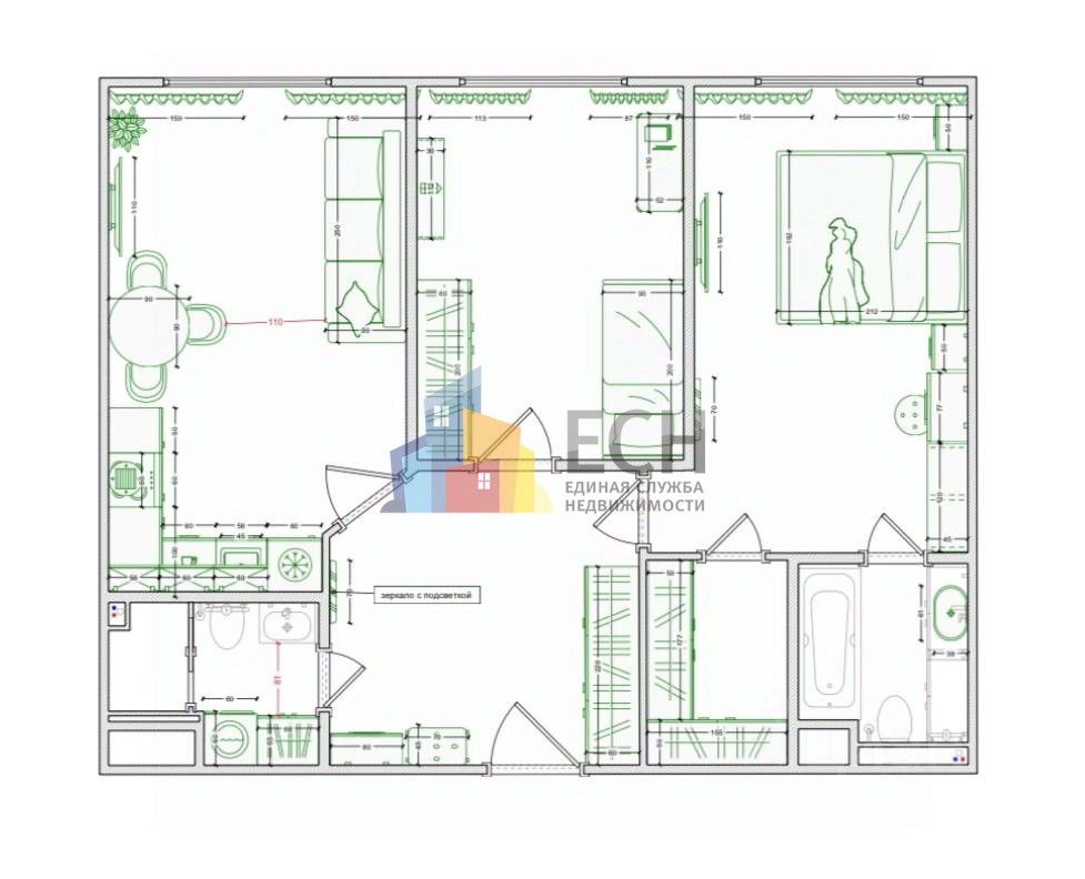 В квартире сделан дизайнерский ремонт. Удобная планировка. Мастер спальня со своей гардеробной и санузлом. Кухня оснащена всей необходимой техникой и станет отличным местом для кулинарных экспериментов. Квартира полностью меблирована, Вам останется только привезти свои вещи.