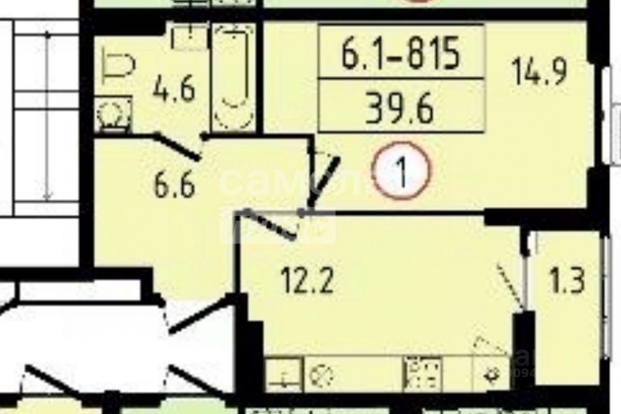 Просторная кухня-гостиная 12 м2 с выходом на балкон.