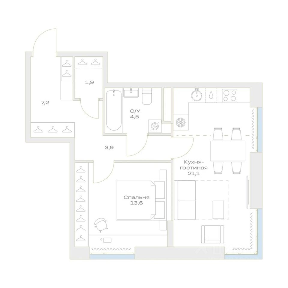 Продаётся 1-комнатная квартира в строящемся доме (Корпус 1), срок сдачи: III-кв. 2026, общей площадью 52.2 кв.м., на 5 этаже. ЖК "Детали" воплощает в жизнь мечту - жить в технологичном доме авторского дизайна на приватной территории в окружении развитой инфраструктуры, природного парка и водоема с отличной транспортной доступностью.