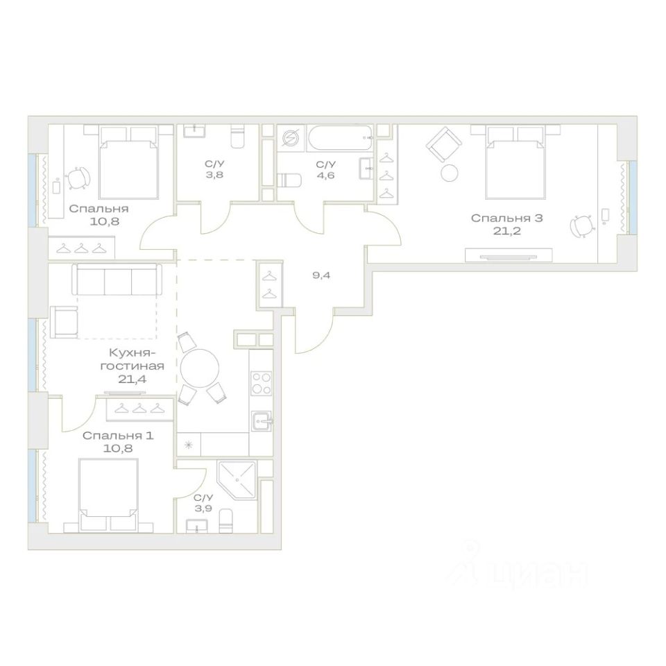 Продаётся 3-комнатная квартира в строящемся доме (Корпус 1), срок сдачи: III-кв. 2026, общей площадью 85.9 кв.м., на 8 этаже. ЖК "Детали" воплощает в жизнь мечту - жить в технологичном доме авторского дизайна на приватной территории в окружении развитой инфраструктуры, природного парка и водоема с отличной транспортной доступностью.