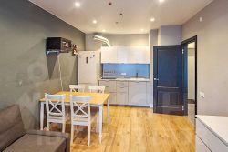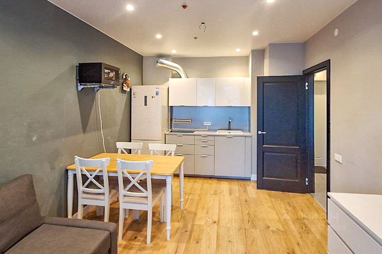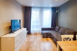 В апартаментах сделан качественный евроремонт. Пространство оформлено в светлых тонах с использованием современных материалов. Планировка включает одну светлую комнату и совмещенный санузел, что делает жилье идеальным для комфортного проживания. Окна выходят во двор, поэтому в квартире всегда тихо и уютно.