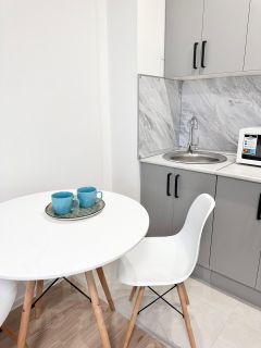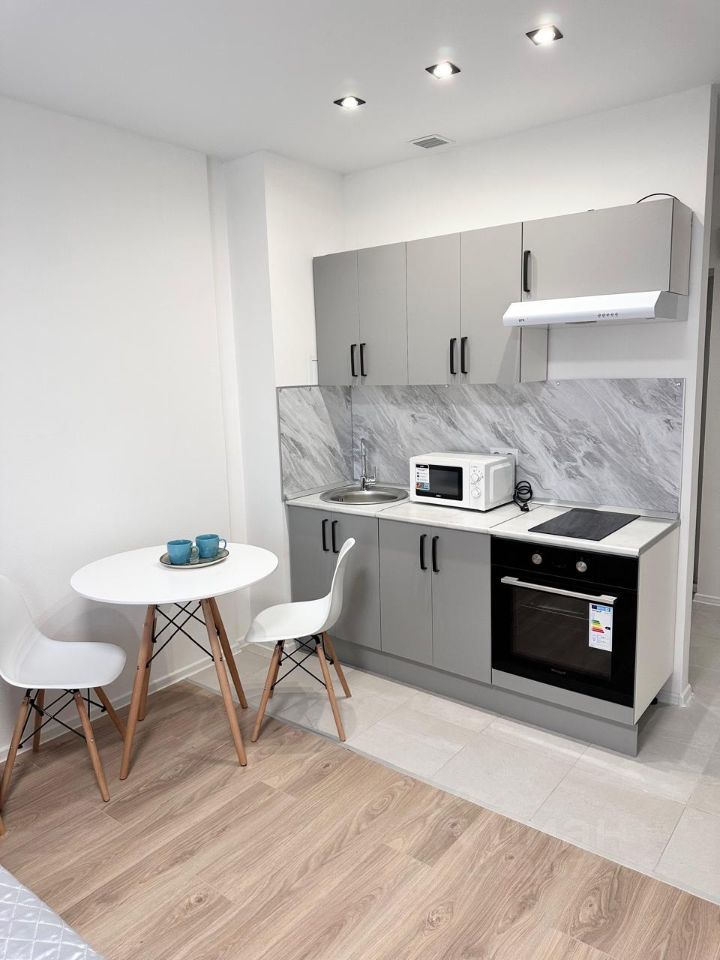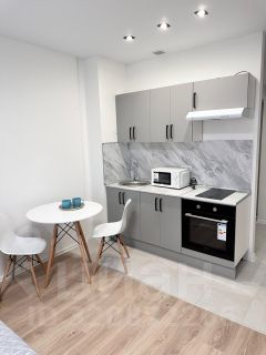 Апартаменты с евроремонтом, что делает их готовыми к заселению без дополнительных вложений. Просторная студия оформлена в современном стиле и обставлена необходимой мебелью и техникой. Здесь есть всё для комфортного проживания: удобная кухня, зона отдыха и совмещённый санузел, выполненный в светлых тонах.