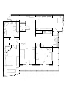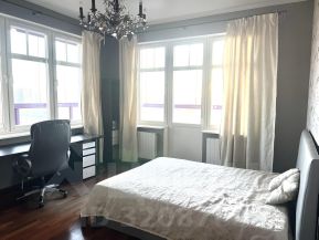 Мастер-спальня 27м с гардеробной и ванной 12м, вторая спальня 27м, детская или кабинет 15м с окнами на две стороны, гостиная 30м, кухня 20м, кладовка 3м, второй с/у 2,5м (есть возможность расширить и установить душ), лоджия по периметру двух комнат (выходы из трех комнат)