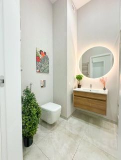 Квартира продается укомплектованной встроенной мебелью и встроенной бытовой техникой, гардеробными (системами хранения), и ванными комнатами, установлена централизованная система кондиционирования Daikin, которая охлаждает и очищает воздух в квартире.