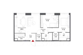 • дополнительную спальню/детскую 11,7 м²