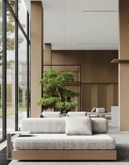 Фасады здания украшены витражным остеклением, подчеркивая элегантность архитектурного решения. Входные группы отделаны натуральными материалами. Лобби предлагает комфортабельные зоны отдыха и продуктивного труда благодаря специально оборудованным лаундж-пространствам и коворкингу.