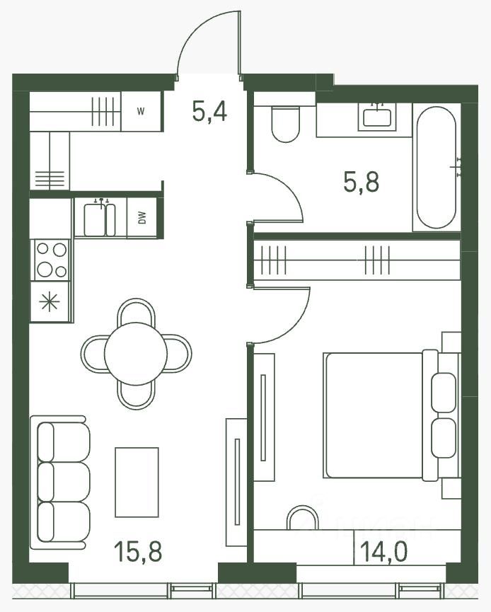 Продается от собственника стильная, однокомнатная квартира, формата Евро2 в жилом комплексе бизнес класса, всего в 15 минутах на транспорте от Кремля!