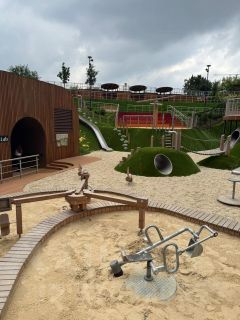 На площади 1,7 гектара создан живописный парк с террасным склоном, в котором растут луговые травы, кустарники и деревья. Пространство ландшафтного двора-парка разделено на зоны для активного и спокойного отдыха с зелёными уголками для любителей тишины.