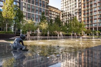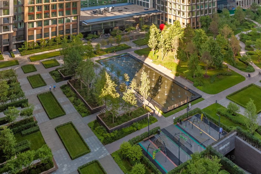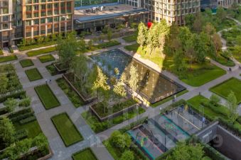 Скоро в соседней башне откроется фитнес с бассейном для жителей. В комплексе получился на редкость удачный закрытый двор, который больше похож на приватный парк c тенистыми аллеями и крупномерными деревьями с пышной листвой.