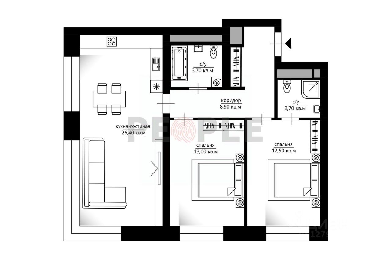 — Просторная кухня-гостиная — уютное и функциональное пространство для жизни, встреч и отдыха.— Две изолированные спальни — комфорт и приватность для каждого члена семьи.— Два санузла — удобство для повседневного ритма.— Холл с возможностью обустройства системы хранения — отличное решение для верхней одежды и обуви.— Выделены места под две гардеробные зоны — избавят от необходимости громоздкой мебели в жилых комнатах.