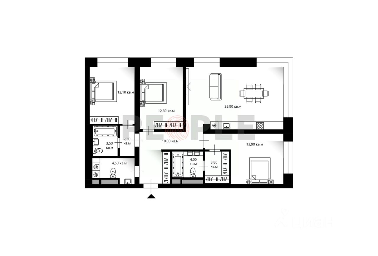 В корпусе REDS 1 премиального жилого комплекса Republic предлагается угловая 4-комнатная квартира площадью 95,59 м². Квартира без отделки — чистый холст для создания индивидуального дизайнерского интерьера.