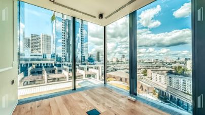 Панорамное остекление открывает захватывающие виды на столицу, наполняя пространство естественным светом и энергией.
