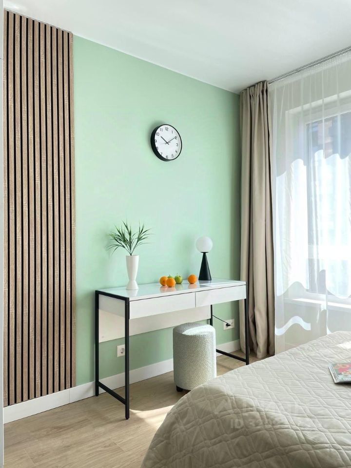 Вся техника и мебель в идеальном состоянии, остается новому владельцу. Двуспальная кровать с ортопедическим матрасом. Умный дом за вас закроет шторы и включит кондиционер, выключит свет и поставит чайник. Сочетание мятного цвета с цветом дерева поможет дома расслабиться и набраться сил. Так же установлены дополнительный фильтр на воду, посудомоечная и стиральная машины. Много мест хранения.