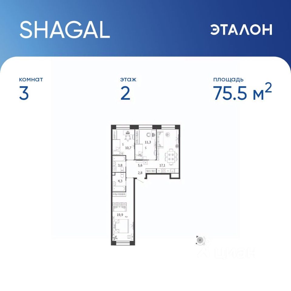 75,5 м²