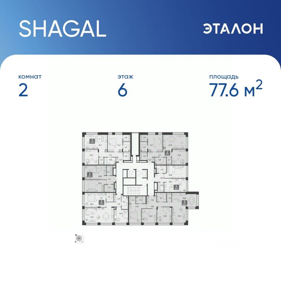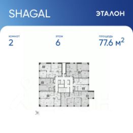 Продается квартира 140, по адресу г. Москва, ЮАО, Даниловский, ул. Автозаводская, вл. 23/75, корпус Жилой квартал Shagal, 3 очередь, 4 этап, корпус 3 в Shagal на 6 этаже, с площадью 77.6 м2.