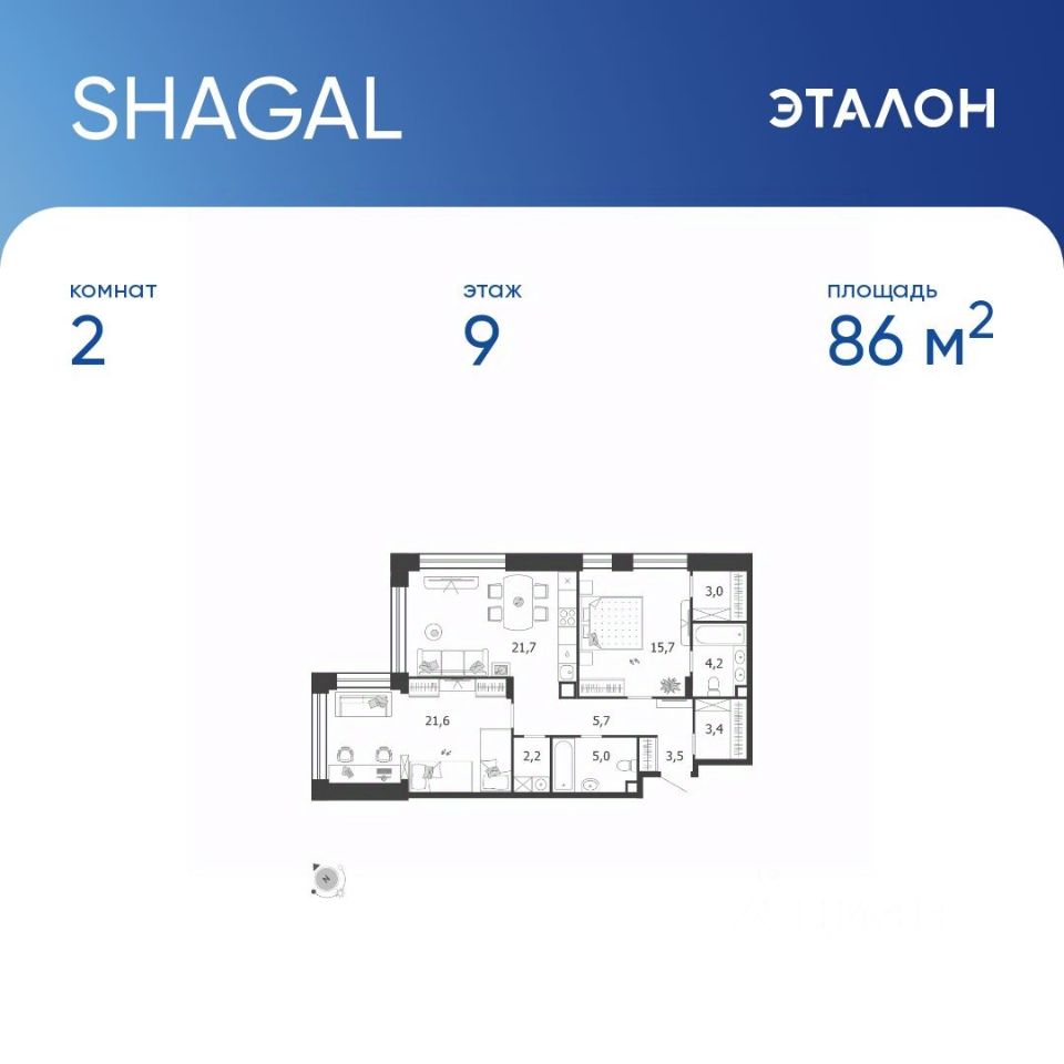 21,7 м²