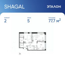 Продается квартира 84, по адресу г. Москва, ЮАО, Даниловский, ул. Автозаводская, вл. 23/75, корпус Жилой квартал Shagal, 3 очередь, 4 этап, корпус 2 в Shagal на 5 этаже, с площадью 77.7 м2.