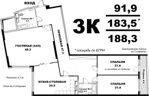 ПАРАМЕТРЫ 3К. Общая площадь 188.3, чистая площадь по ЕГРН 183.5, жилая площадь 91.9, подсобная 91.6 м2. Кухня-столовая 29.5; гостиная 48.3; две спальни по 21.8; остеклённая лоджия на две комнаты 4.8; два совмещённых санузла: с душевым поддоном 5.5 и джакузи 9.3; прихожая 47.3 м2. Потолки 3.1 м. Панорамное остекление. Окна на 2 стороны. Вид на Москва-Сити. Первая линия набережной Москвы-реки. Оптимальная высотность: этаж 2/31. ОТДЕЛКА Полностью выполнена предчистовая отделка (white box). Выровнены и оштукатурены стены, в комнатах уложен ламинат и плинтуса, в санузлах - плитка. Смонтирован кухонный фартук и вытяжка, все окна пластиковые с подоконниками, полностью разведены сантехника и электрика (смонтированы выводы под люстры, фурнитура). Установлены все межкомнатные двери. Метал. входная дверь. Все черновые "грязные" работы завершены, что даёт возможность сразу обустраивать всё под себя, по своему вкусу, не переплачивая за чужую отделку. Есть готовый разработанный дизайн-проект - передаём в подарок. ДОКУМЕНТЫ Одна большая семья: родители и четверо детей. 3 взрослых собственника и 3 детей. Первые Собственники. Документ-основание: от ведомства за выслугу лет. В собственности более 5 лет. Полная стоимость в ДКП. Комплект документов к сделке собран. Нет обременений и перепланировок. Никто не прописан и никогда не проживал. Любые проверки! Подходит под льготные программы господдержки, ипотеку любого банка. Возможен разумный торг. Регулярные показы. Несложная АЛЬТЕРНАТИВА, предварительные варианты уже подобраны. ДОМ ЖК "Утёсов", бизнес-класс, 2019 г.п. от девелопера Флэт и Ко. Каскадный в 3 корпуса 31-этажный 6-подъездный дом. Монолит-кирпич. Архитектурный стиль в эстетике небоскребов Нью-Йорка. Класс энергоэффективности наивысший А+. 5 квартир на этаже. 4 скоростных лифта KONE (2П и 2ГП), один из которых только для Собов. 2 эвакуационные лестницы. Общий балкон. Кладовые. Тех.этаж. Домовой фильтр воды. Закрытая территория: круглосуточный консьерж, охрана и КПП со шлагбаумом, доступ по смарт-карте. Собственная УК. Нежилой 1-й этаж, безбарьерная среда, двор без машин. 3-этажная подземная парковка с лифтом, гостевой паркинг. Просторные МОП с гостевым WC. Качественная отделка лобби и входной группы (стены, пол и потолок в итальянском мраморе, зеркала, стекл. двери). Европейский уровень комфорта. Детские, игровые и спортплощадки, зоны для отдыха, аллеи для прогулок с велодорожками. Корпуса объединяет между собой 3-уровневый стилобат с коммерцией. ТРАНСПОРТ В паре минут езды ключевые магистрали города: 380 м от Звенигородского шоссе, 1.7 км до СЗХ, 4.5 км до ТТК и 7.7 км до Садового кольца. В пешей доступности: ст. БКЛ Народное ополчение, ст. МЦК Хорошёво, ст. метро Полежаевская. Напротив дома остановка общ. транспорта ЖК Утёсов. ИНФРАСТУКТУРА ЖК в обжитом элитном районе Хорошево-Мнёвники, на северо-западе Москвы. Комплекс в зелёной зоне. Рядом парки Серебряный Бор с пляжем, Филёвский и Крылатские холмы, Москворецкий дендропарк и Мневниковская пойма.