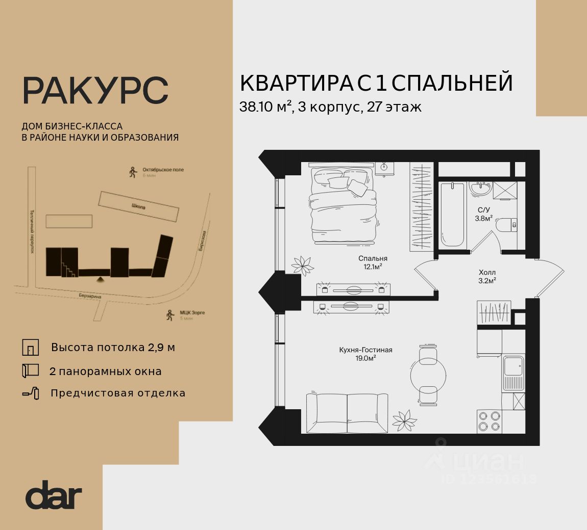 Продаётся 1-комнатная квартира 38.10 м² в жилом комплексе Ракурс. Квартиру отличают панорамное остекление, улучшенная шумо и воздухоизоляция. Дом сдаётся в 1 квартале 2028 года, продажи проходят через эскроусчета. Подземный паркинг, коворкинг, закрытая благоустроенная территория с фонтаном и артобъектами. Гибкие условия покупки.